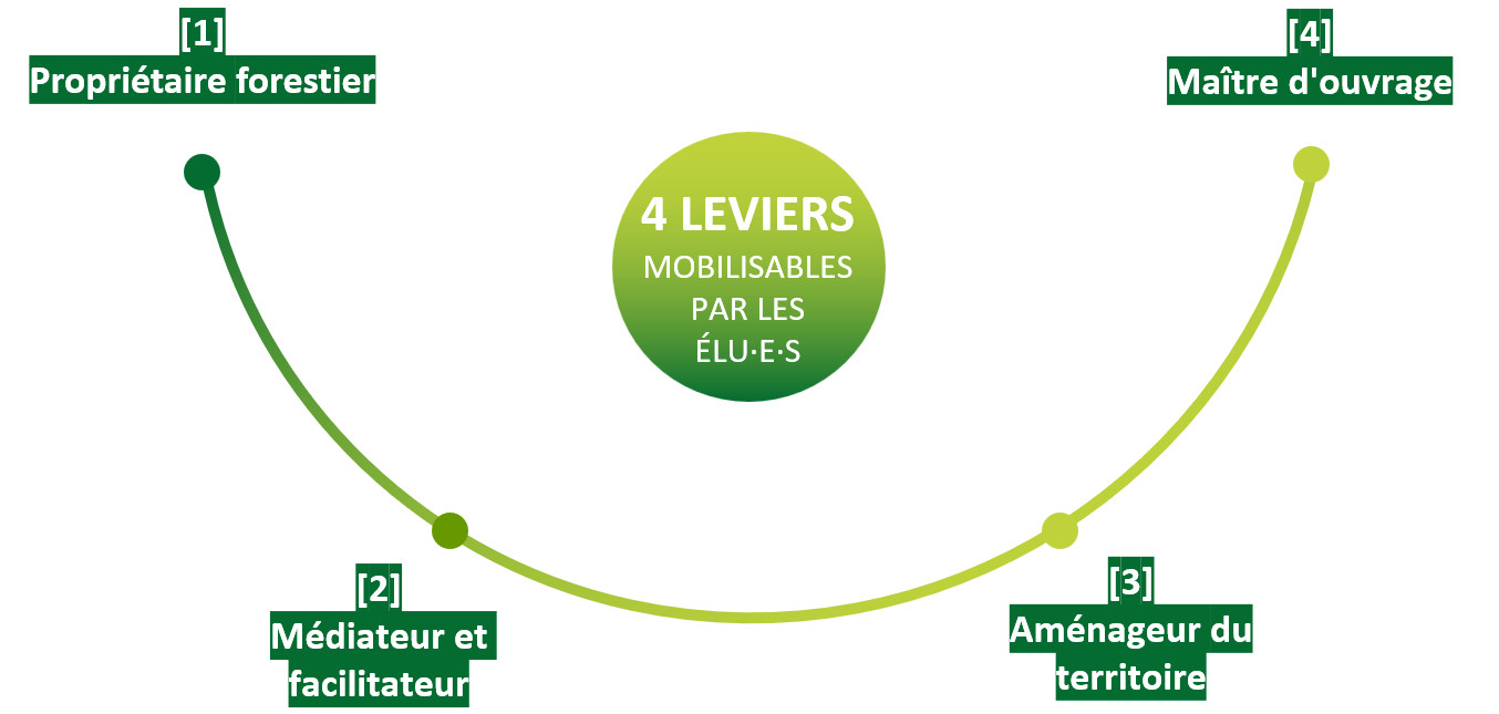 Communes et intercommunalités peuvent définir et structurer leur action forestière autour de 4 leviers :