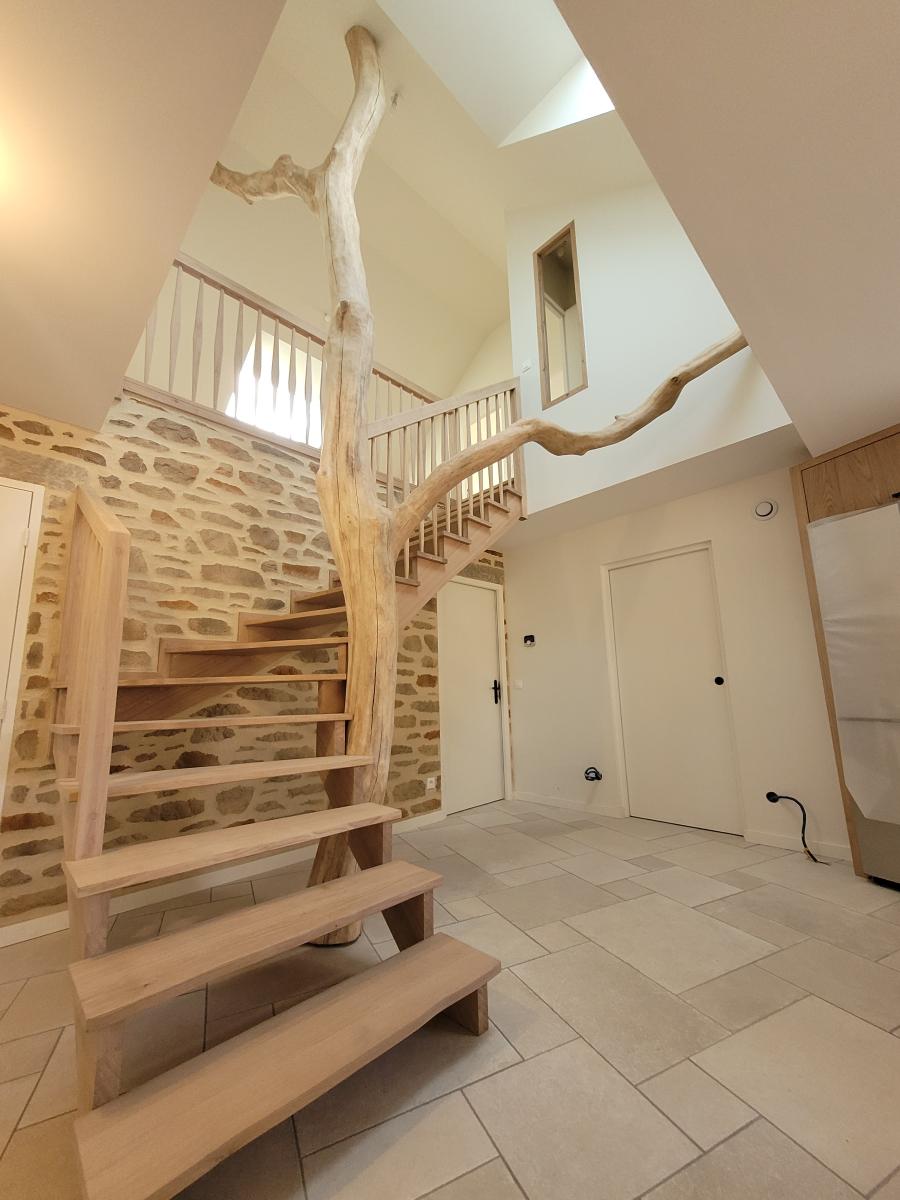 Nous travaillons uniquement avec des bois d’origine locale, Grand Ouest ou France, avec des feuillus, tels qu’essentiellement le chêne, frêne, châtaignier, peuplier et des résineux tels que douglas, pin sylvestre, mais aussi thuya, cyprès de Lambert.