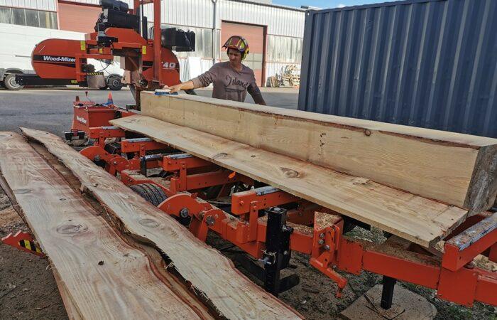 Diamètre maximal de sciage : 90cm (scierie mobile) et 1m50 (à la gruminette).