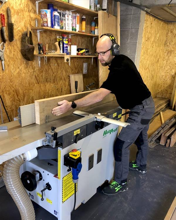 Spécialisé dans la fabrication sur-mesure, je conçois vos projets tels que vous les désirez. Artisan menuisier travaillant le bois depuis 1998, mon atelier se situe sur la commune de Saint-Coulitz dans le Finistère. Plusieurs années d’expérience et de passion du bois à votre service.