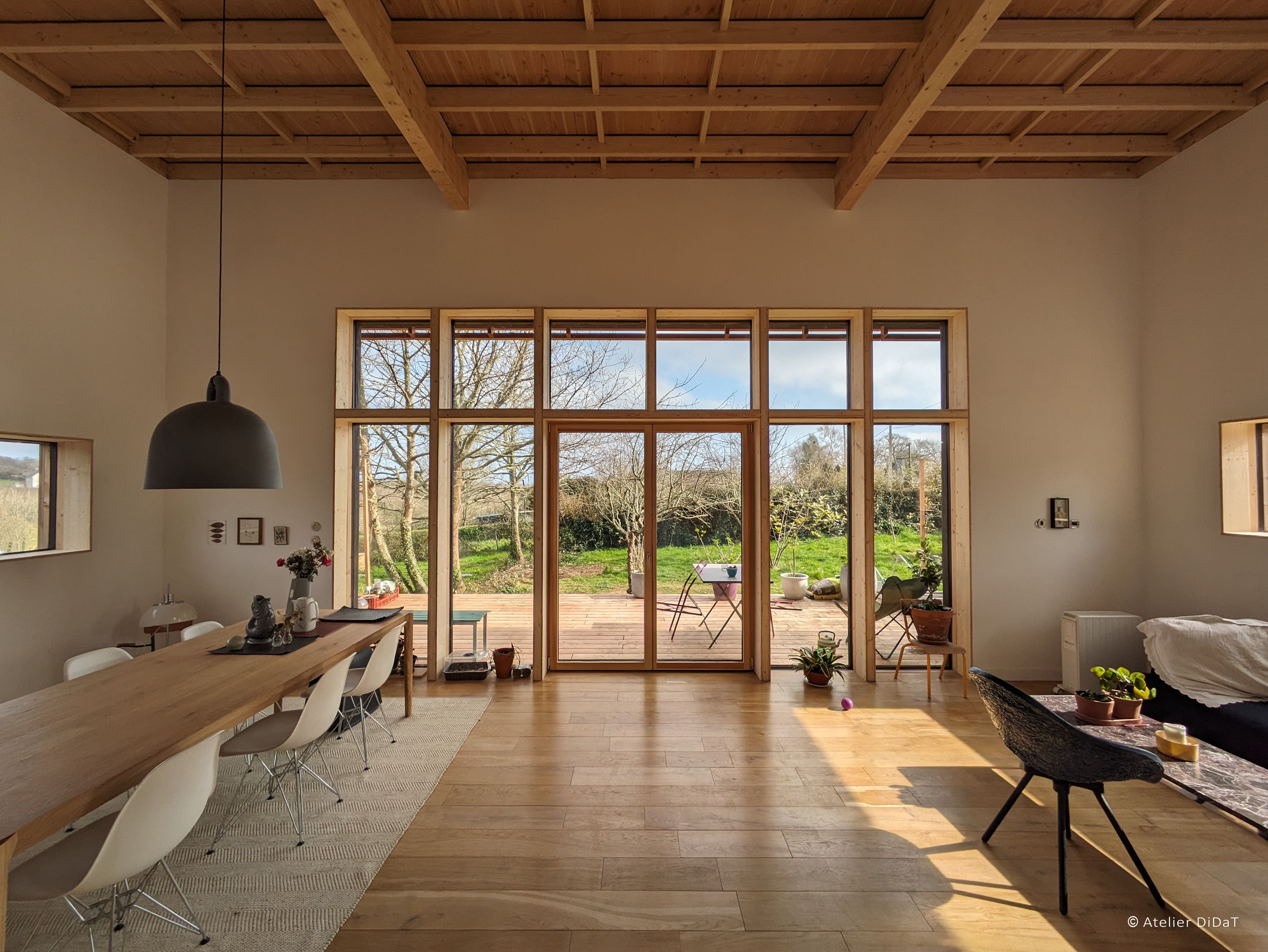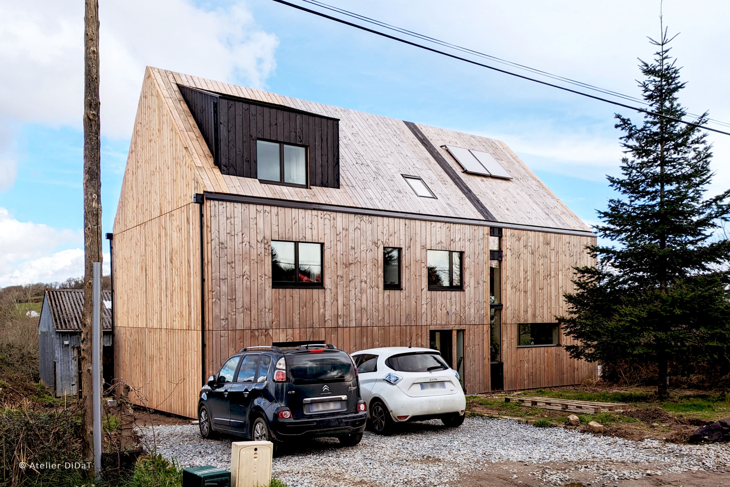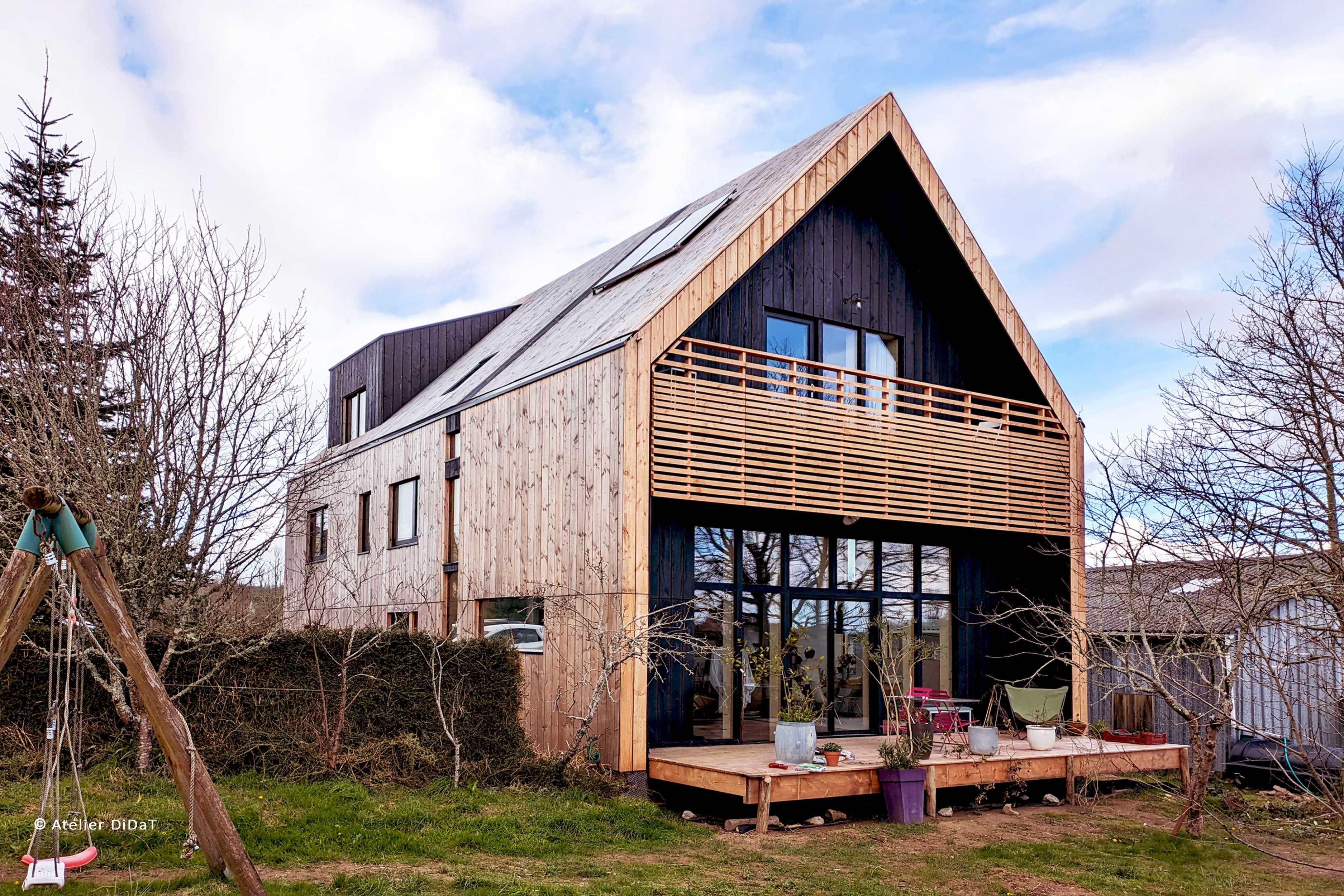 L’ensemble du bois, utilisé pour l’enveloppe et l’extension, vient de France (Jura dans le grand-Est) et n’a pas subi de traitements complémentaires (naturel).