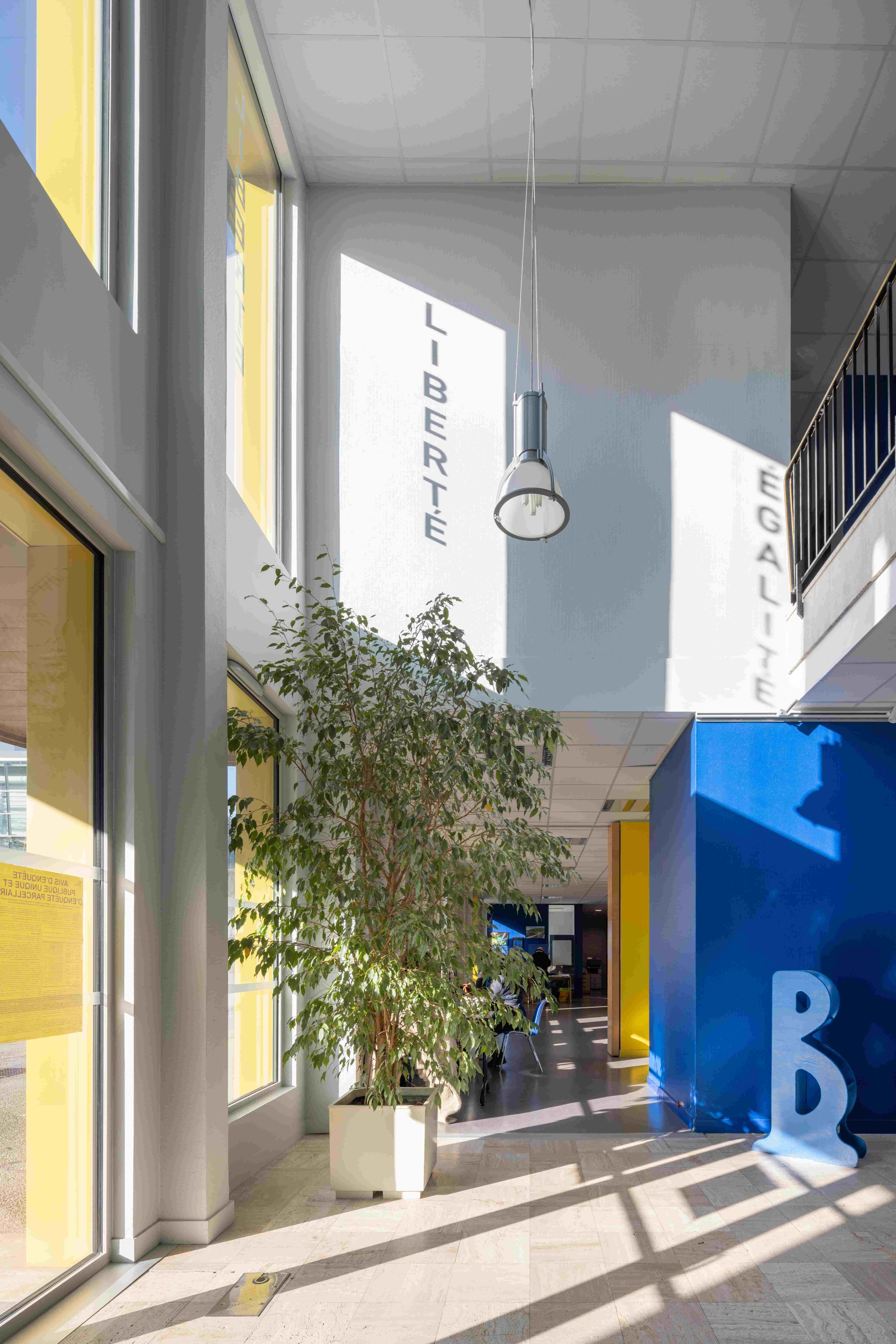 • La création d'un sas d'accueil en remplacement du sas temporaire existant et le remplacement de l'auvent d'entrée de la salle des mariages